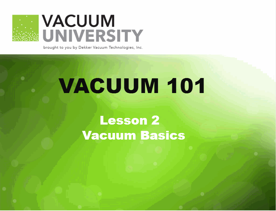 Welcome to Vacuum 101, Lesson 2: Vacuum Basics. In this lesson, we will discuss gases, including air and their significance to understanding vacuum. This lesson takes approximately 15- 20 minutes to complete.
